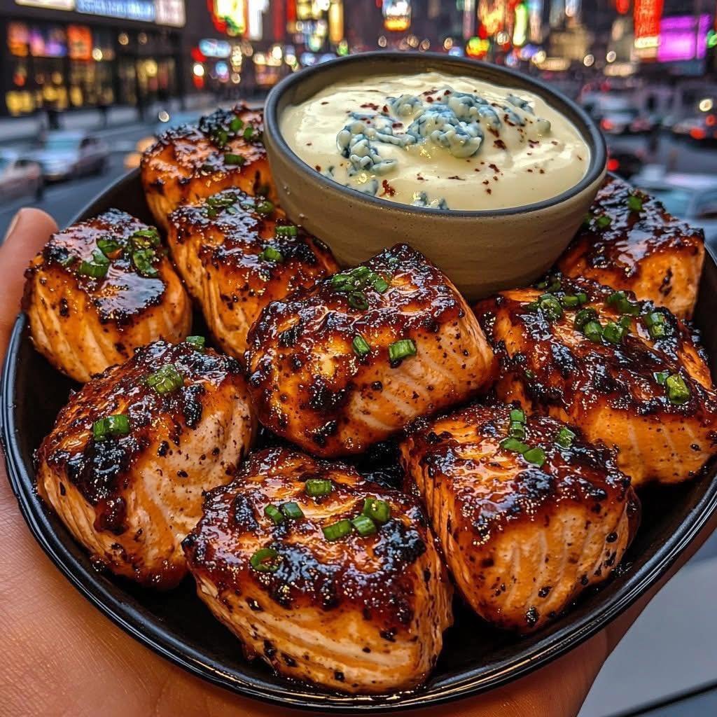 Get ready for a flavor explosion — smoky, spicy, and oh-so-creamy! These BBQ salmon bites are glazed to perfection and paired with a tangy blue cheese dip that’ll have everyone coming back for more!