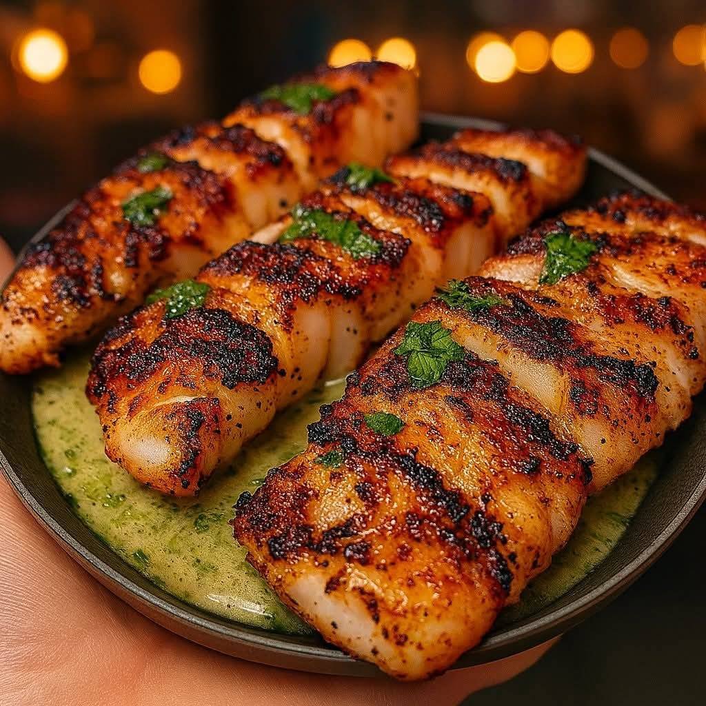 Garlic Butter Cod Strips with Cilantro Lime Sauce