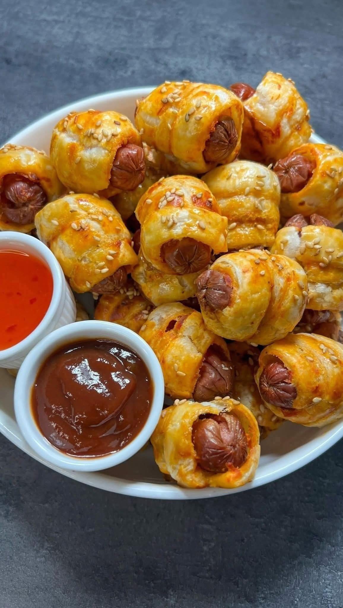 Mini Sausage Rolls — crispy, golden, and totally addictive! 💛 Perfect for parties, snacks, or tea time — they disappear fast!
